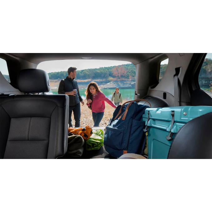 O Equinox RS tem visual mais esportivo com acabamentos em preto brilhante e a exclusiva cor Vermelho Rubi. Por dentro, os bancos são revestidos em couro com costuras vermelhas e o teto também é preto. Do lado de fora, a grade e para-choques têm desenho exclusivo e pintura preta em vez de cromados, assim como as rodas e o rack de teto.