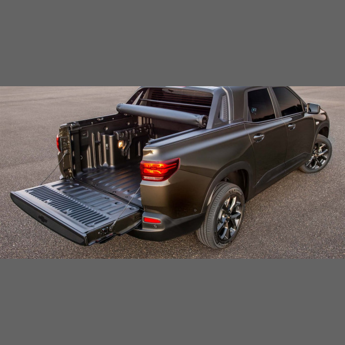 elétrico sensível ao toque ("touchpad") com alívio de peso na subida e descida / Ganchos para amarração de carga no interior da caçamba (8 ganchos)